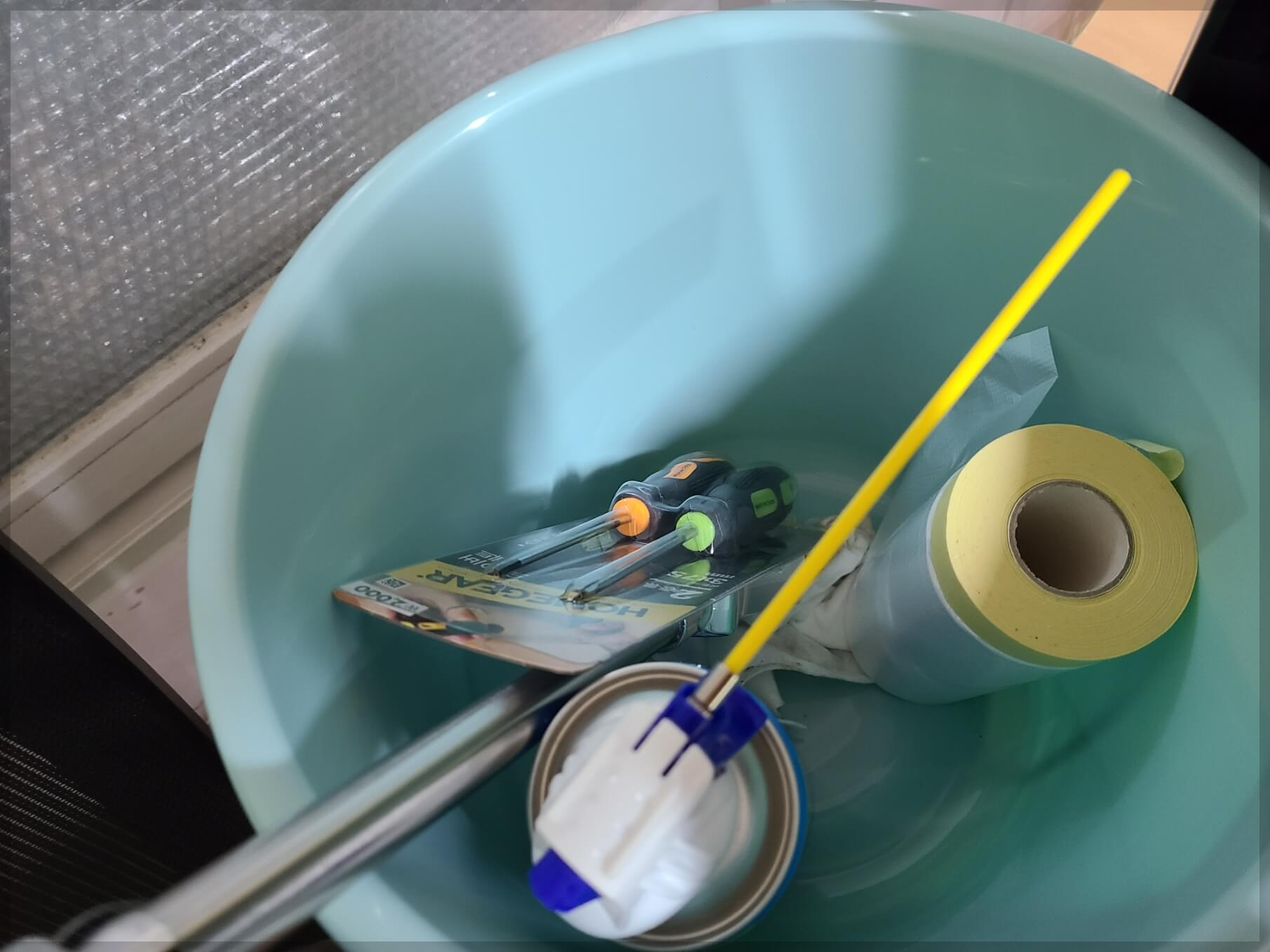* 에어컨 세척제, 드라이버, 솔, 커버테이프, 물받이용 통 이렇게 구매했습니다.