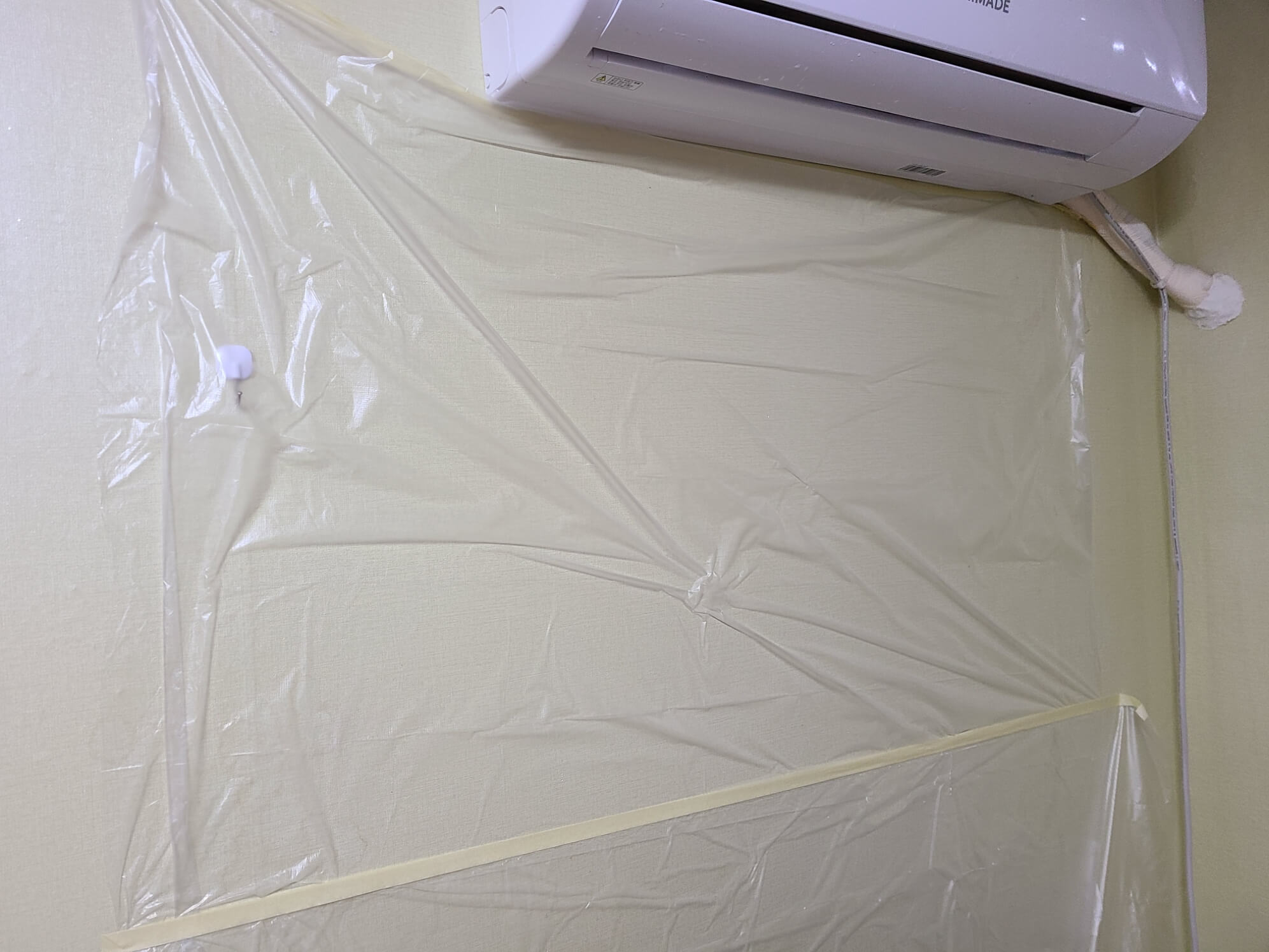 ▼에어컨 청소를 하시기 전에 이렇게 커버 비닐을 활용해서 떨어지는 물들을 바구니에 들어오도록 물길을 만들어 주었습니다. 커버테이프는 꼭 하시는 것을 추천드려요 커버테이프는 알파문구점, 첨문점 등에서 판매한답니다.