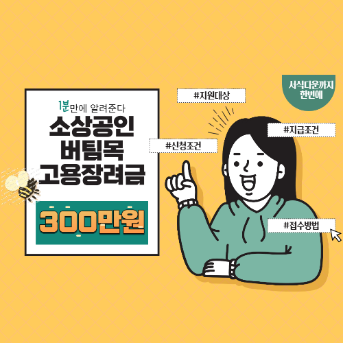 서울시가 소상공인 민생경제 회복을 위해 23년 신규채용 근로자 1인당 고용장려금 300만원을 지원하고 있습니다.