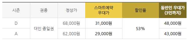 ㆍ제휴카드 결제 시 대인요금 기준에서 적용됩니다.