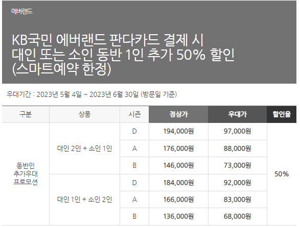 ■ KB 국민 에버랜드 판다 카드 최대 3인 50% 우대 (~6월)