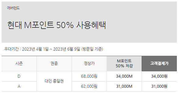 ㆍ우대기간 : 2023년 4월 1일 ~ 2023년 6월 9일 (방문일 기준)