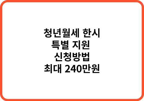 청년월세 한시 특별지원은 코로나 19의 장기화로 경제적 어려움을 격고 있는 청년들을 위한 지원금입니다. 청년들의 주거비 부담을 줄여주고자 청년 월세를 한시적으로 지원하는 제도 입니다. 월세로 거주하는 청년을 대상으로 실제 납부하는 임대료에서 최대 240만원까지 지원해 줍니다. 월 최대 20만원 을 12개월(회) 동안 매월 분할 지원 하는 제도입니다.