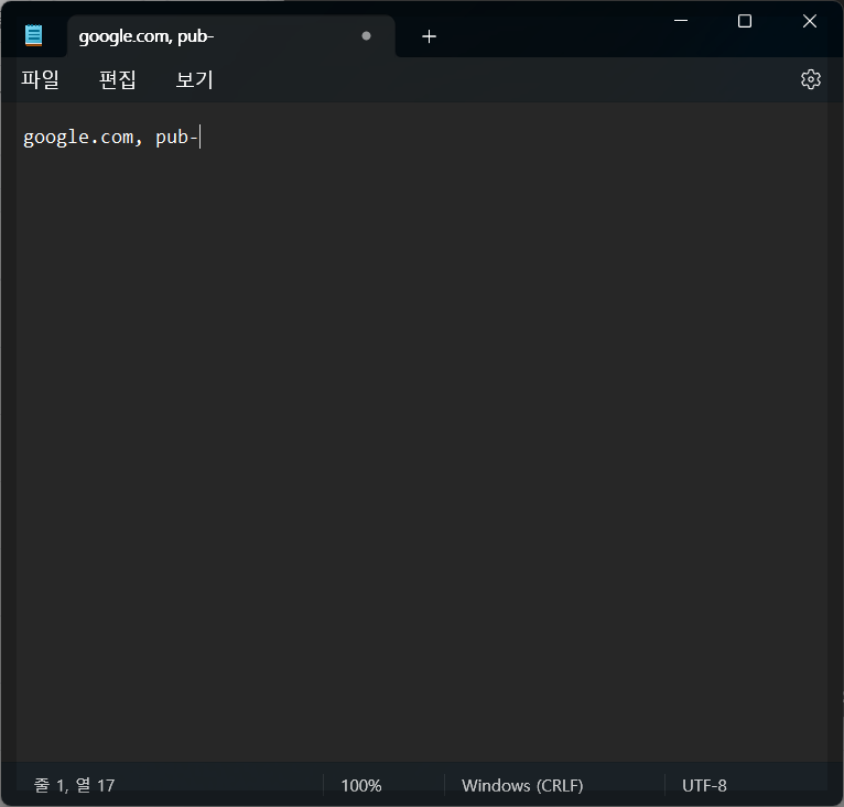 3. 메모장에 내용을 붙여 넣은 뒤 저장 : 파일 명은 ads.txt