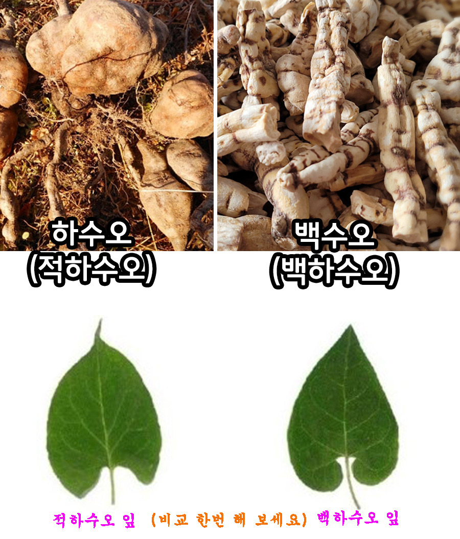 [4] 네이버 블로그 - 적하수오와 백하수오 차이점, 하수오 효능과 부작용 (https://m.blog.naver.com/byunstorm/223058998772)