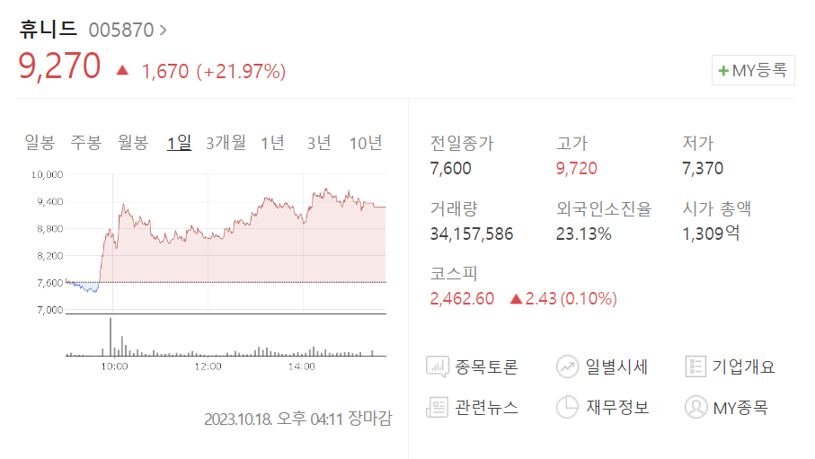 휴니드 급등주 분석