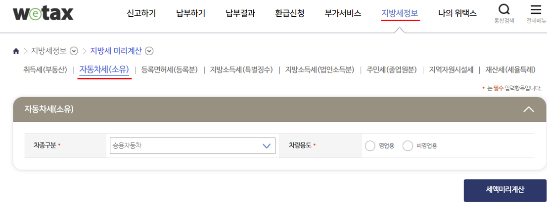 위택스 자동차세 계산기를 활용하면 자동차세를 바로 확인 가능합니다.